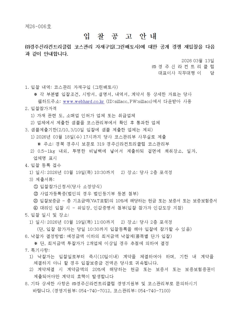 제목코스관리자재(그린배토사) 입찰공고문 2026-03-13