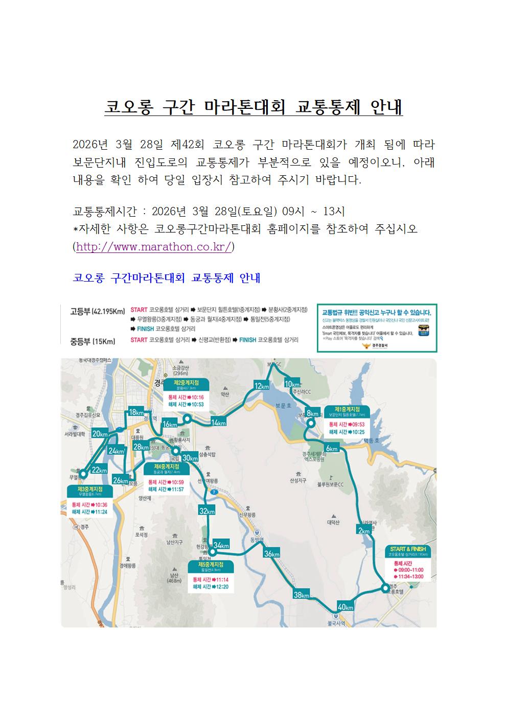 제목코오롱 구간 마라톤대회 교통통제 안내 2026-03-21
